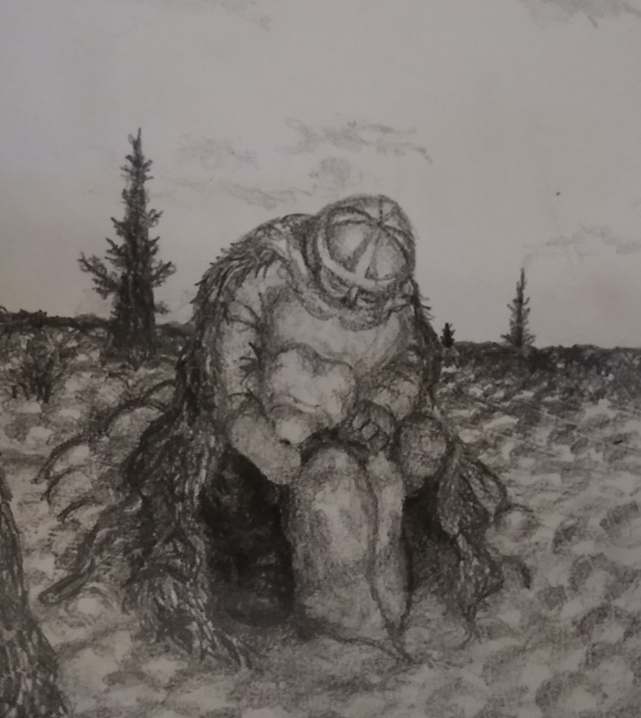 I feel like something as adorable as the stoat girl sleeping curled up on Sas' lap deserves a picture of it's own."I'll make us a fire at least..." Sas declares and slowly stands up, the stoat lass curled at his lap slowly sliding off. She doesn't move, but is breathing, and the man's careful motion does not interrupt this state. "I think I'll go seek something to eat at dawn." he adds, as he departs onto his search.