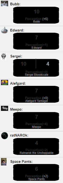 "...I-- I knew that!" At the last moment, Alefgard turned and launched the Ice Knife between Erky, Zumies, and Zeke, striking a spot where the ice shrapnel would only hit the two snakes they were fighting. The icicles quickly extinguished both snakes, effectively ending that side of the combat. "Yeah, that's right. And they'd said I'd never make it as a wizard. Tell your friends."
