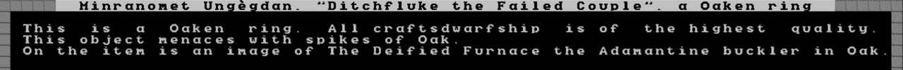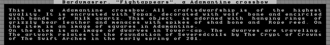 "Oh! Cool!" said Zumies, inspecting Athamgim Bothonnulom, "Focustwisted the Murky Blames," the black bronze crossbow, and nodding with satisfaction. "I didn't know it could do that!"