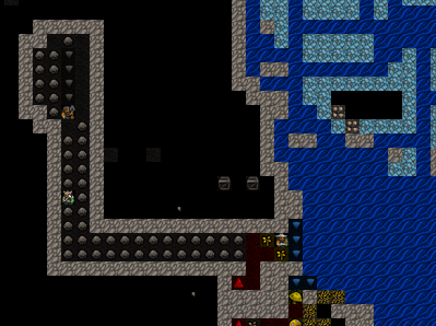 All looks clear at first when the wall is breached. In a couple minutes, though, a mad barking and flapping noise emerges from the depths of the cavern, closing in quickly. Craftsriddles, Sternlance, and Singlecrypt sprint up the main ramp yelling "Zax!! Zax is coming!!" They run right past Threehalls, who was hauling some ore down to the smelters.