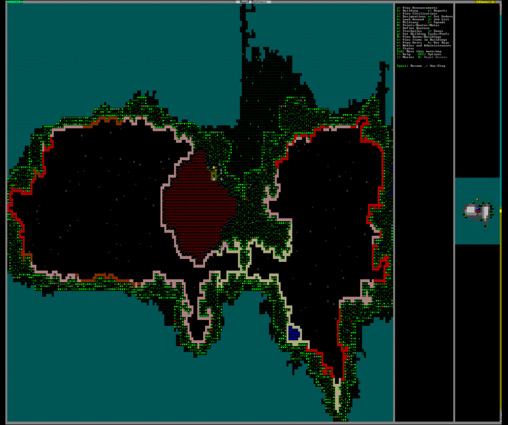 The downside is that being an island, the only traders I'll ever get will be the Dwarf mountainhomes, so no elves or humans or goblins to sacrifice to her glory, though it does mean that aside from wildlife, the odd megabeast, or me breaching the caverns, I should have all the time in the world to build.