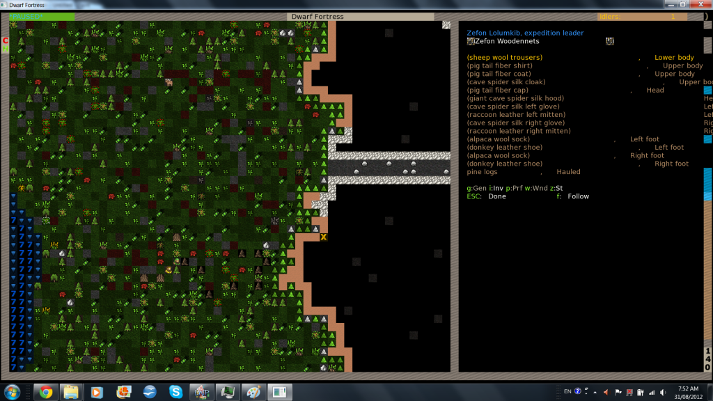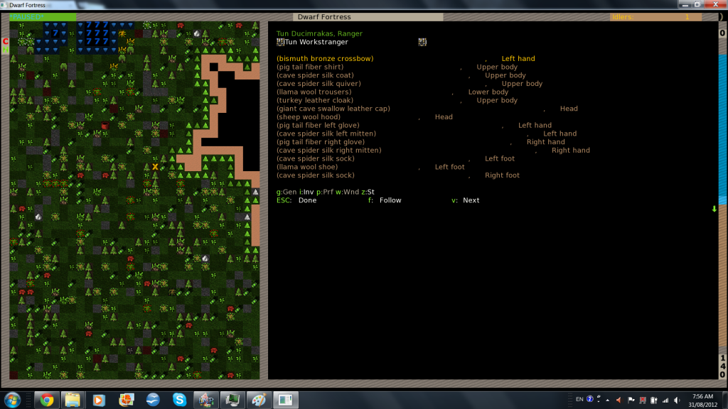 I have tried other texture packs all of which have the same problem, except for the original ASCII pack which corrected itself after a while (but I would much rather play with tiles than ASCII characters). I have tried scrolling the mouse button to make more words fit on the screen and tabbing through display options, and it kinda works for viewing inventories but doesn't work at all for trade. I have pictures below, unfortunately time was short and I couldn't get a trade picture in. Basically the trade screen has each item cut off after about 8 characters and doesn't show any prices for any items.