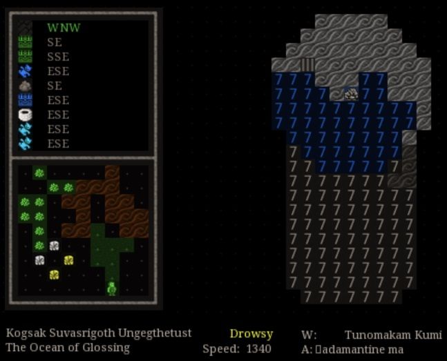 Well then. There's supposed to be humans living on the coast to the west but they've never sent diplomats or traders. Asob wanted me to travel back via the coast if I had time and see if trade relations could be arranged. Seems like a bad idea. I had masterwork cave lobster roast and plenty of nether-cap-chilled prickle berry wine before a well-deserved 24 hour sleep on a nice corner of limestone in the cave.