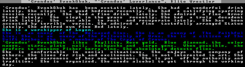 "Fikod Rigòthishen, our miner! So, you're starting to regain that compassion for your fellow dwarf! I can't fault you for not having a great aesthetic sensitivity, big deal. You tried, and I appreciate the gesture. I forgive you, Zon!"