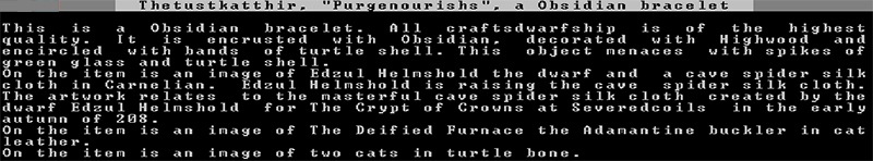 This also has the advantage of delaying Asob Momuzzokun's attempts at peeking beyond the adamantine deposits - with so much area to smooth above, nobody has time to smooth and poke holes in the walls below. Asob assures me she knows what she's doing, and has gone on to carve some new tunnels leading toward the adamantine from the magma chambers for the forges and the underground river. What's she planning, anyway?