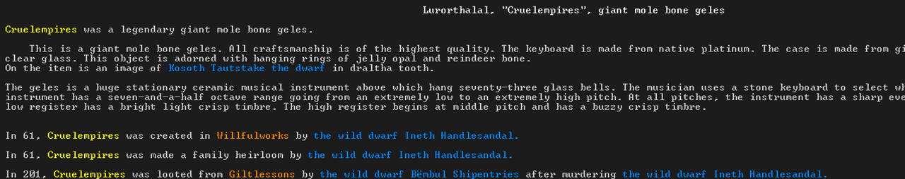 2. I think the focus on clothing in the replies isn't so important - it is true that clothing isn't gendered in DF and it's just not relevant. There are some more subtle markers though beyond beards, and especially elves have gendered societal positions for instance. So there's some room to consider it in-universe as it currently exists. But I do end up going back and forth because there's just not the normal amount of material to work with (it's a matter of will rather than implementation in other games, mostly), so I wonder how it'd be expressed. We have to ask why dwarves have pronouns in the first place, in the english rendering of statements about them - if we're secretly bringing along a lot of gender assumptions, and just not talking about them yet in game, then of course there should be transdwarves and others, since we sim stuff here. But I still feel like I don't see the path forward clearly, and that I'm not thinking clearly. Partially because I've been hesitant to bring in gender (and racial etc.) categories from the real world and putting them all through the game objects (as with clothing), but that still doesn't feel like the crux of things. Just putting in pronoun options as in other games is the obvious step, but it feels thin. Feels like I need a game object or something.