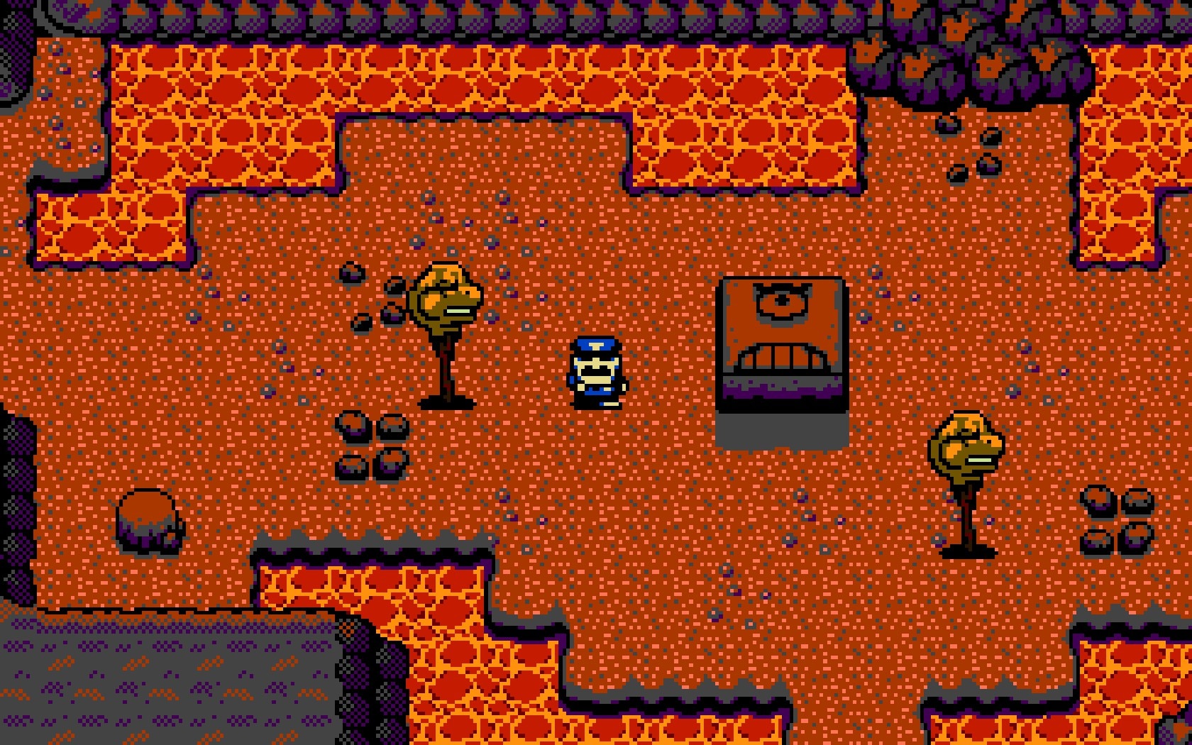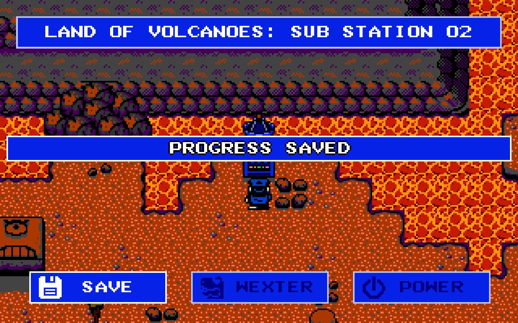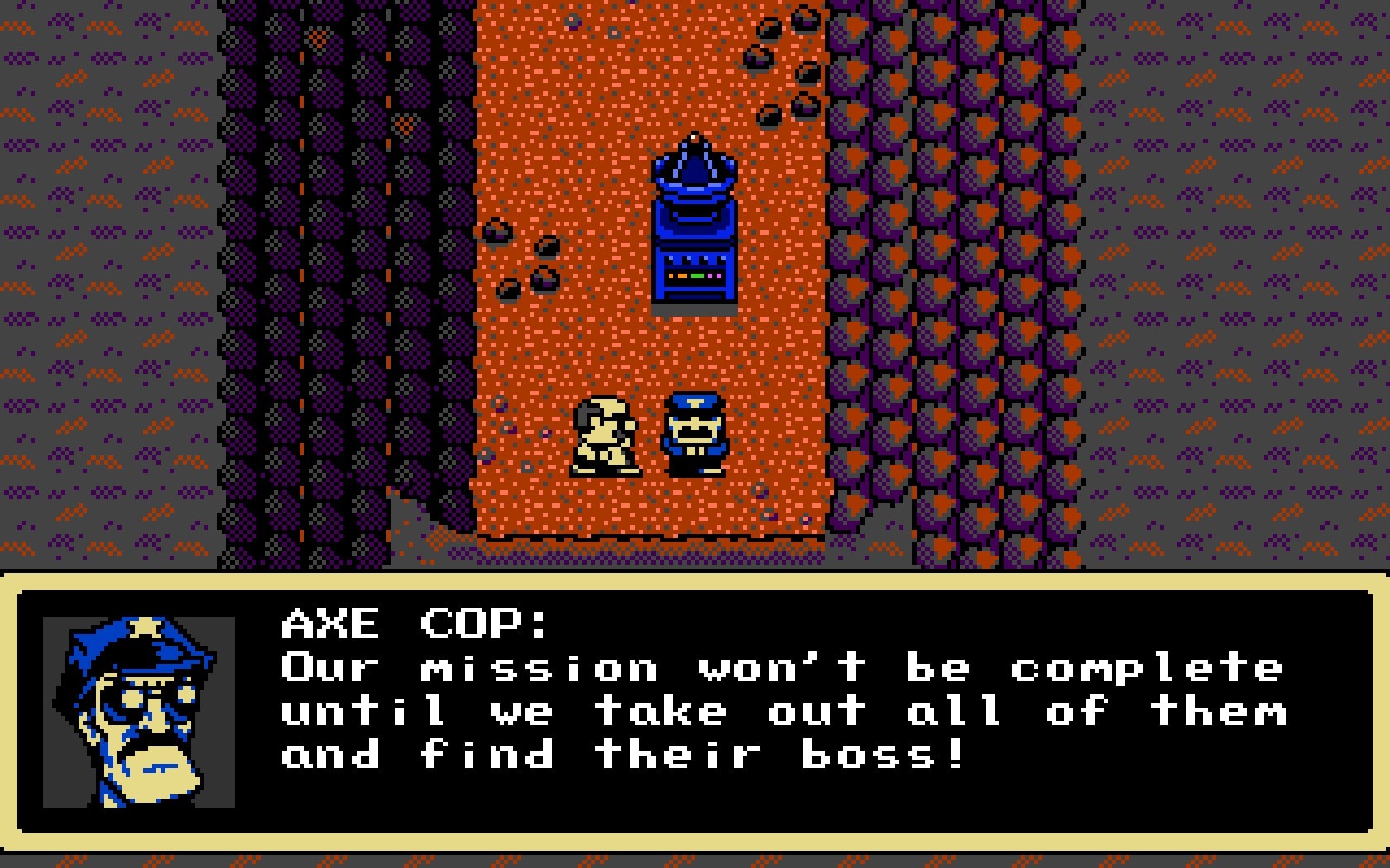 Here we see a device that allows PROGRESS to be SAVED, or to call Wexter to go back to Axe Cop Station. This could be used to visit the bunk beds for HP restores, or later to buy consumables at the CONVENIENCE STORE if the Good Guys run out of beverages and snacks.