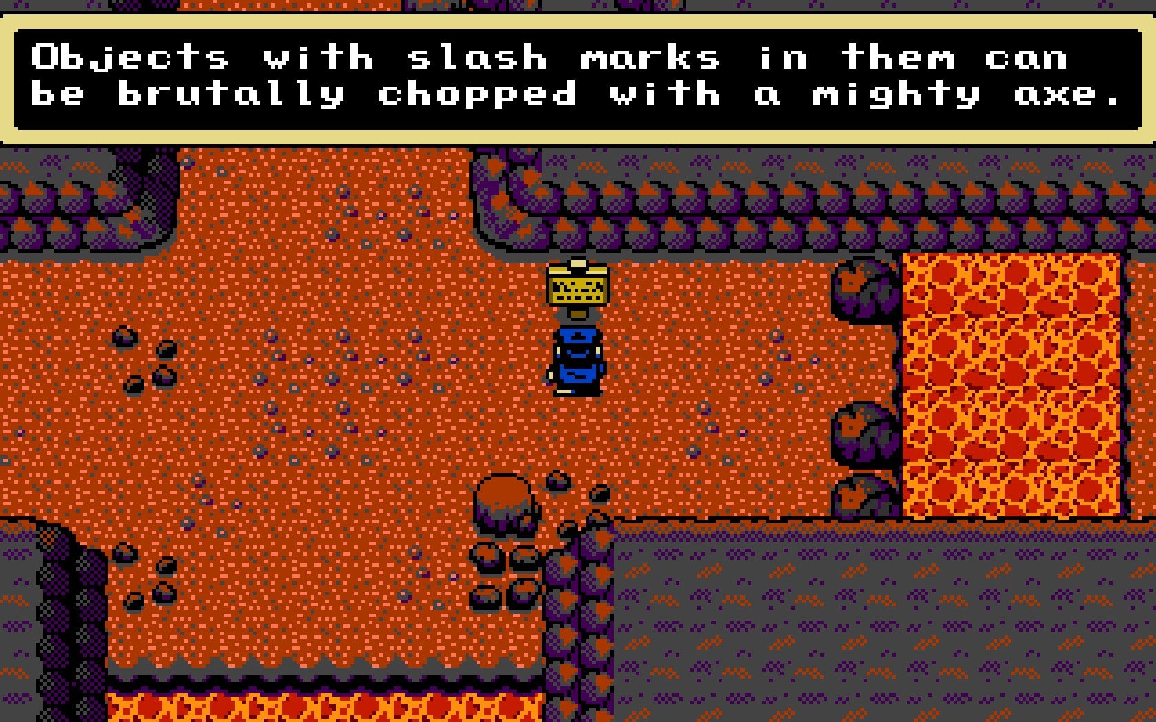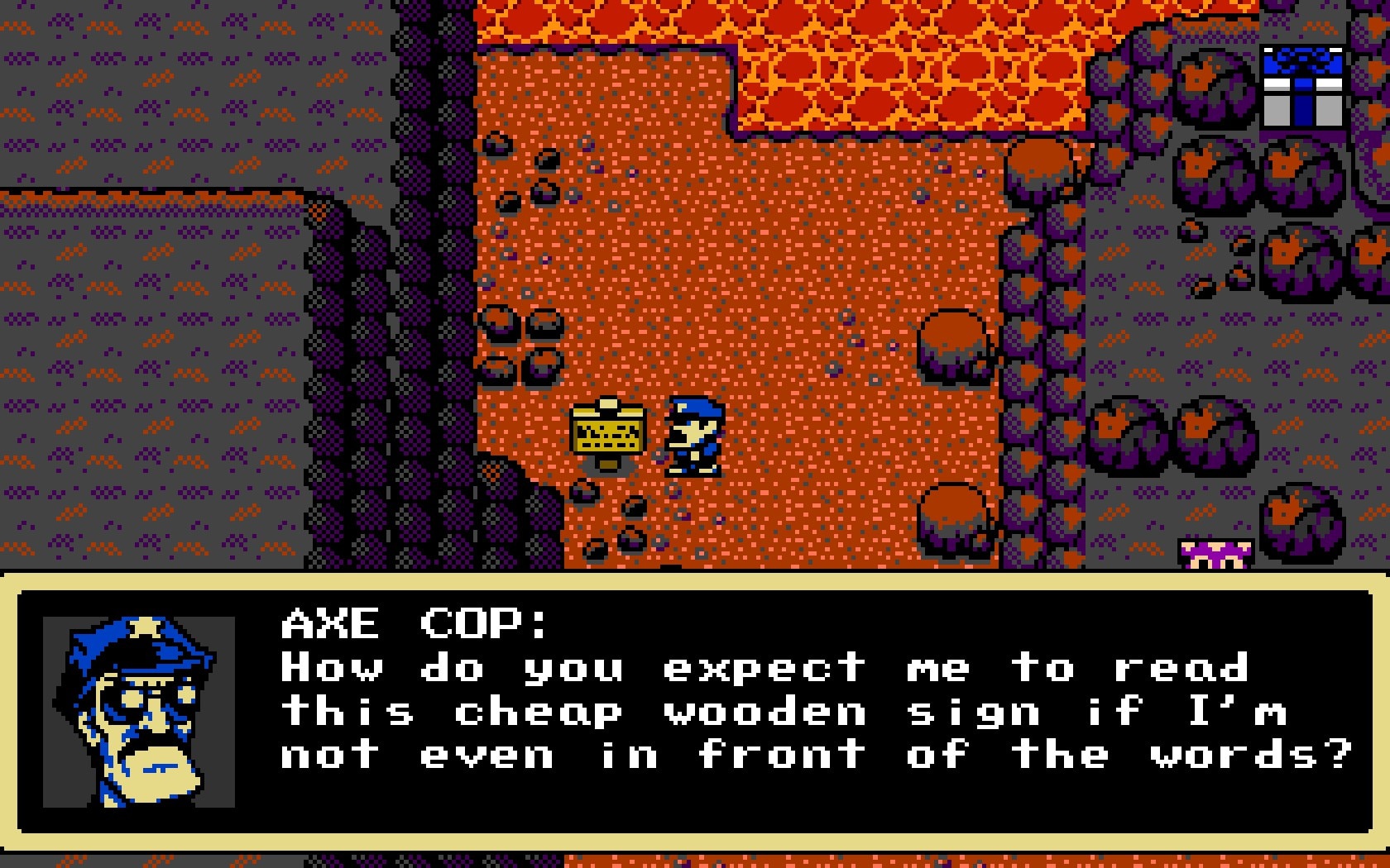 I read the sign and then used Axe Cop's Field Ability to split this rock. Then I remembered about the Let's Play and went back to read the sign again to screenshot it.