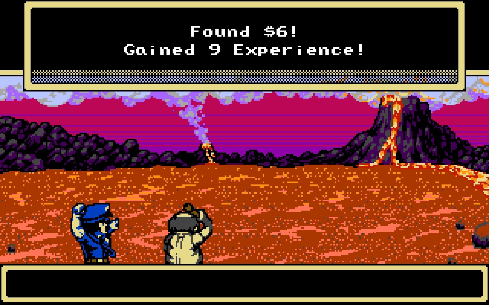 The Good Guys continue exploring the Field and find a pair of Brontosaurii. There is a counter in the corner that shows how many dinosaurs are left to behead. Each fight like this lowers it and the Bad Guys do not respawn here.